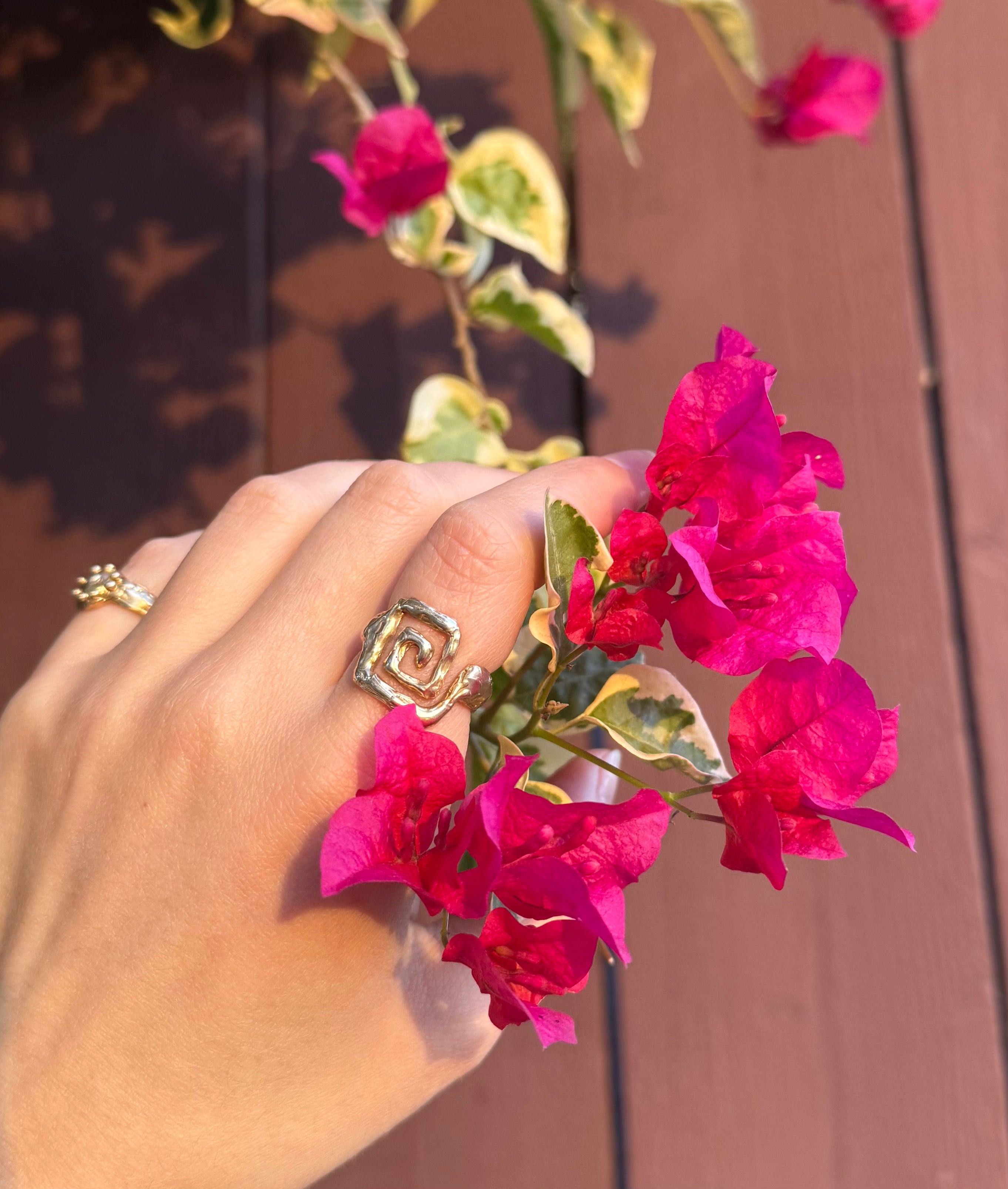 Crescent Ruby Accent CZ Ring in 14K Gold