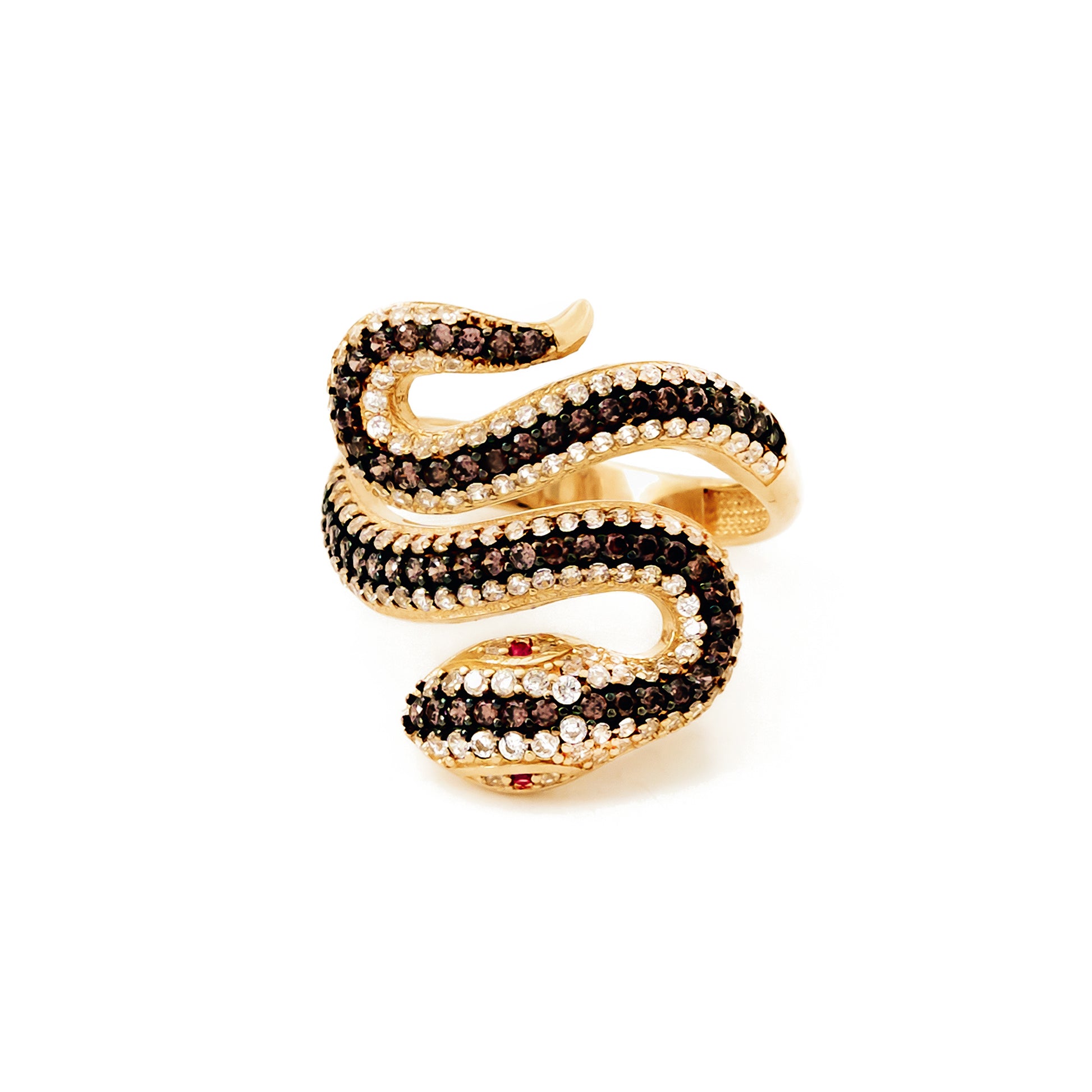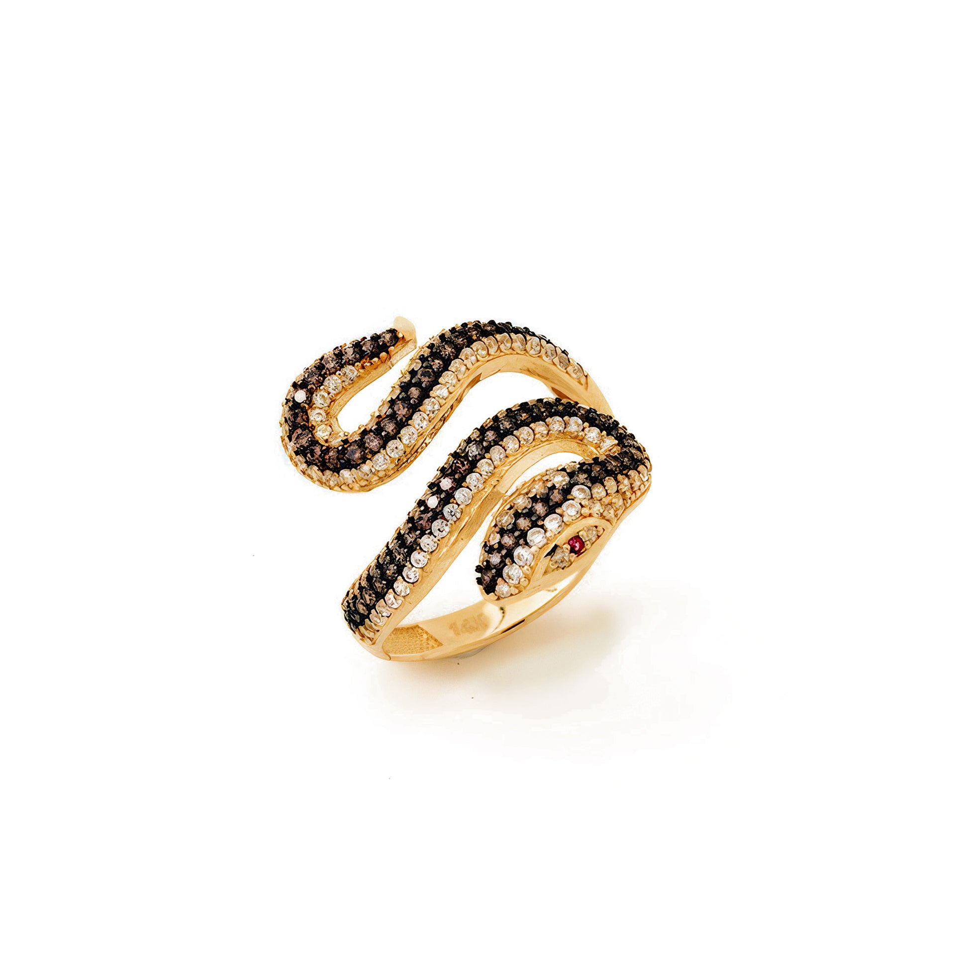 Serpentine Snake Pave CZ Ring in 14K Gold